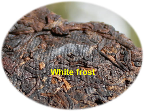 A ‘white frost’ can develop on the surface of a cake (especially the ripened cakes) that not only a naive tea drinker, even some experienced tea drinkers can confuse it with mould, which could also develop over time if a tea is not stored probably.